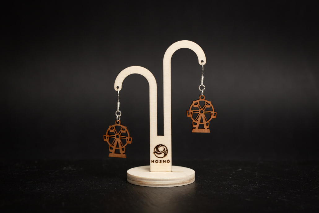 Modische Ohrringe aus Holz – Volksfest-Flair mit Riesenrad-Motiv